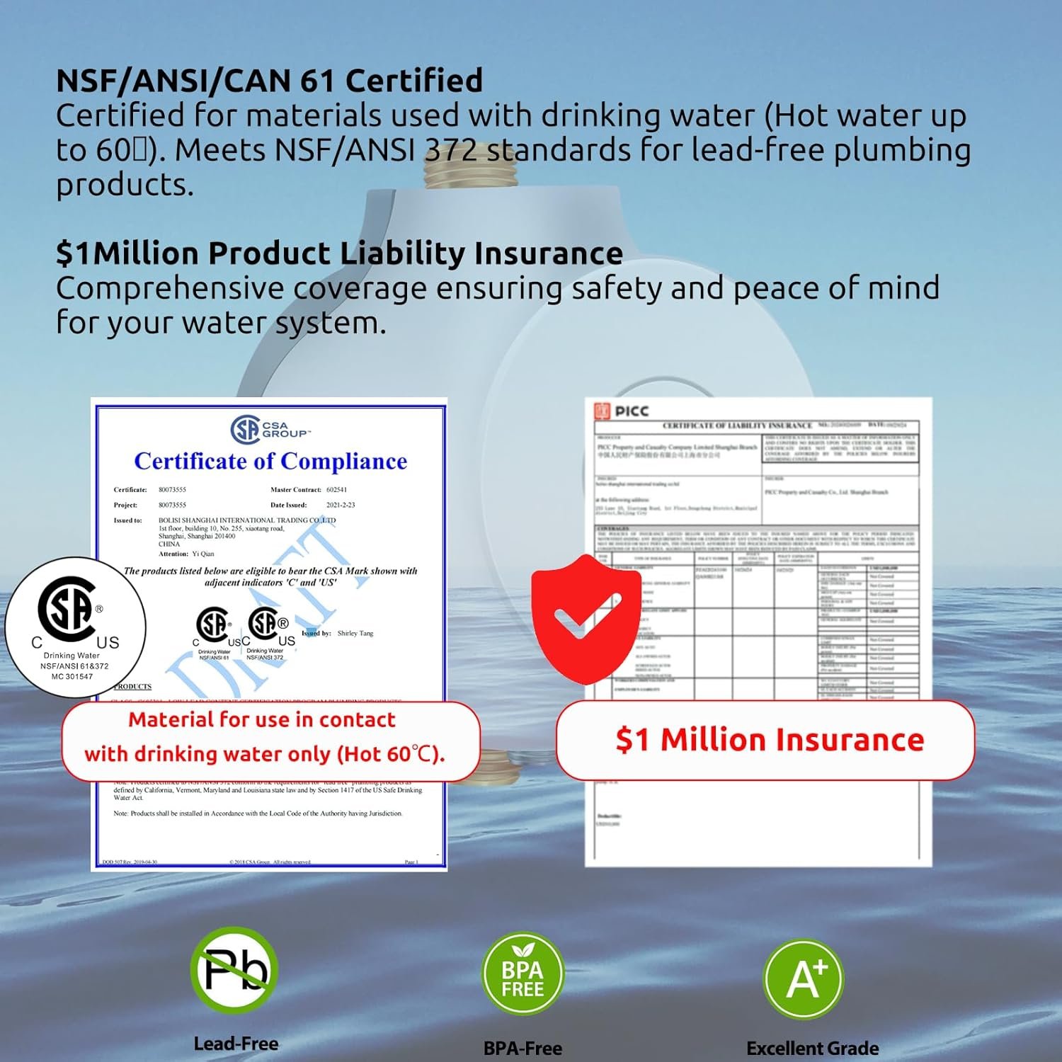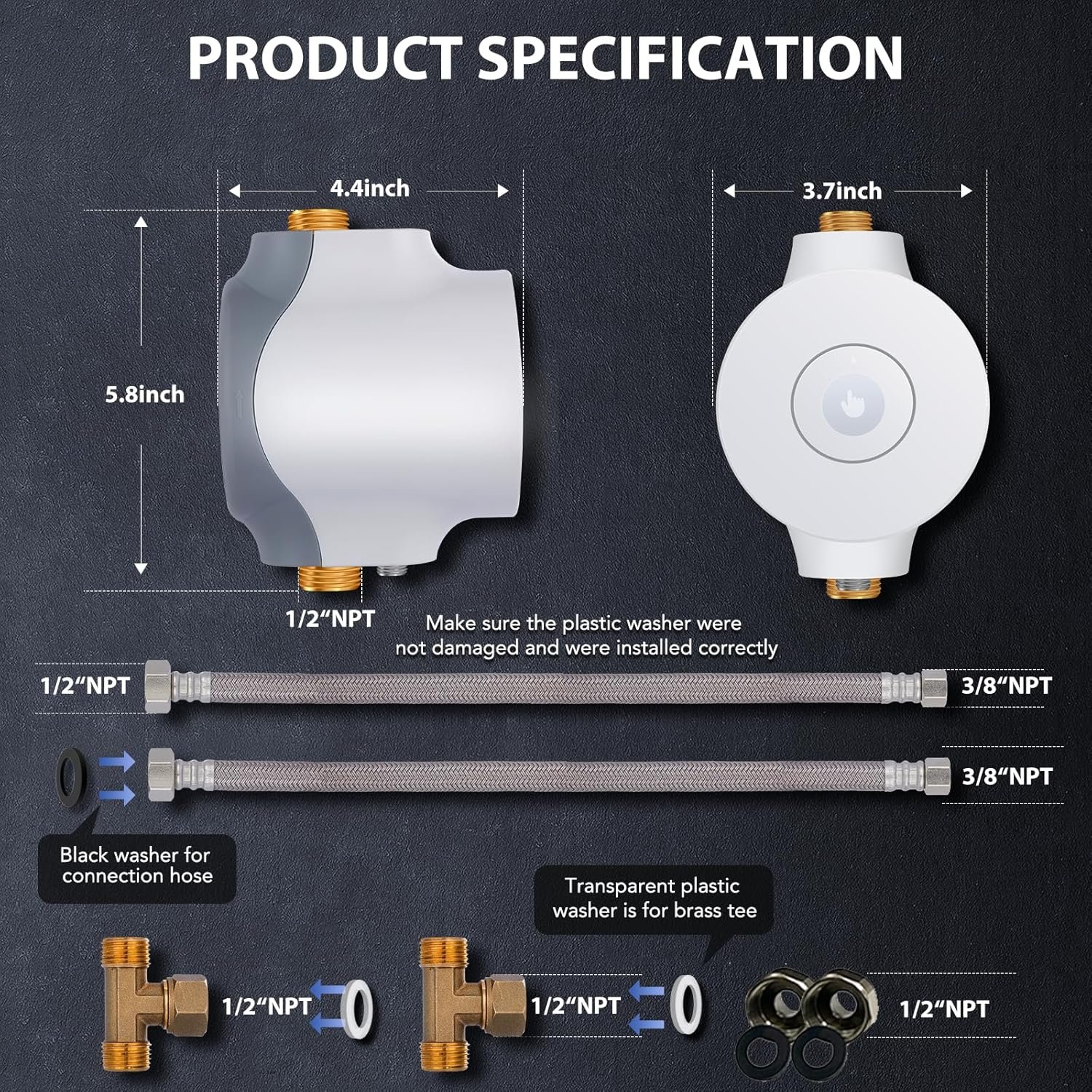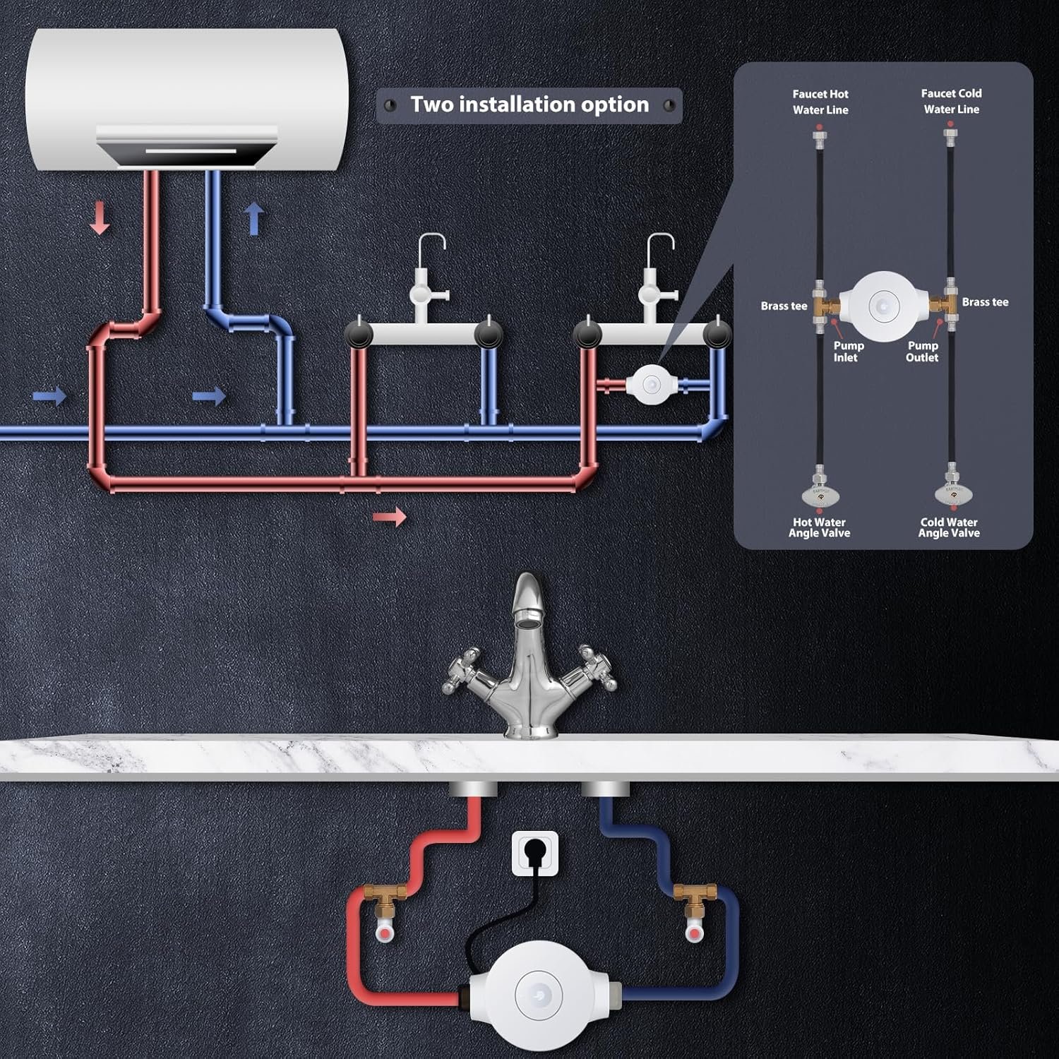 Smart Instant Hot Water Recirculating Pump System NSF/ANSI 61 & 372 for Tanked, Tankless Water Heater 3 speed Bulit-in Thermostat Recirculating Pump for Water Heater Extremely Quiet HBS24-12