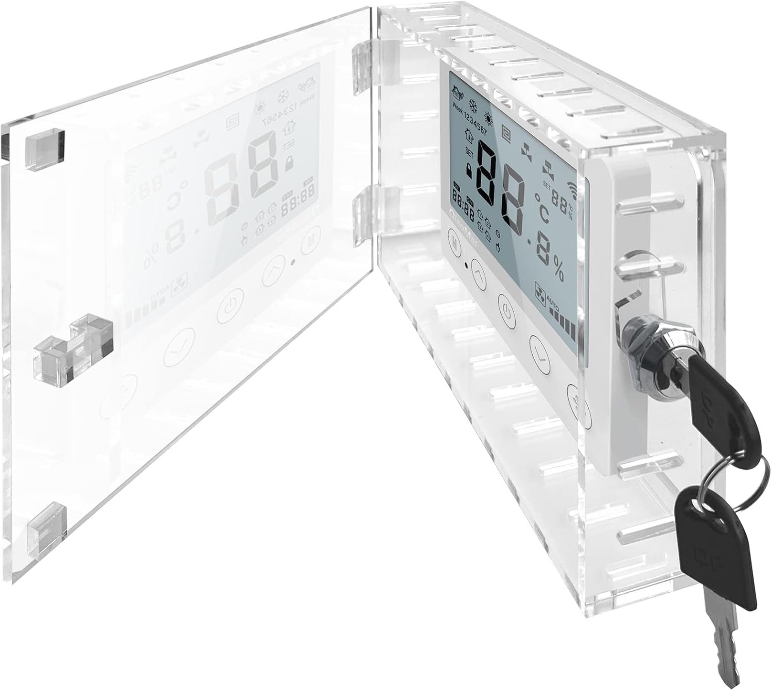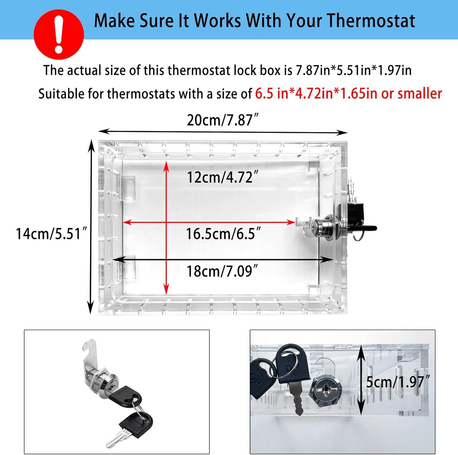 Universal Thermostat Lock Box with Key,Clear Large Thermostat Guard for Thermostat on Wall,Thermostat Guard,Thermostat Cover Fits Thermostats 6.5″ H x 4.72″ W x 1.97″ D or Smaller (1 Set)