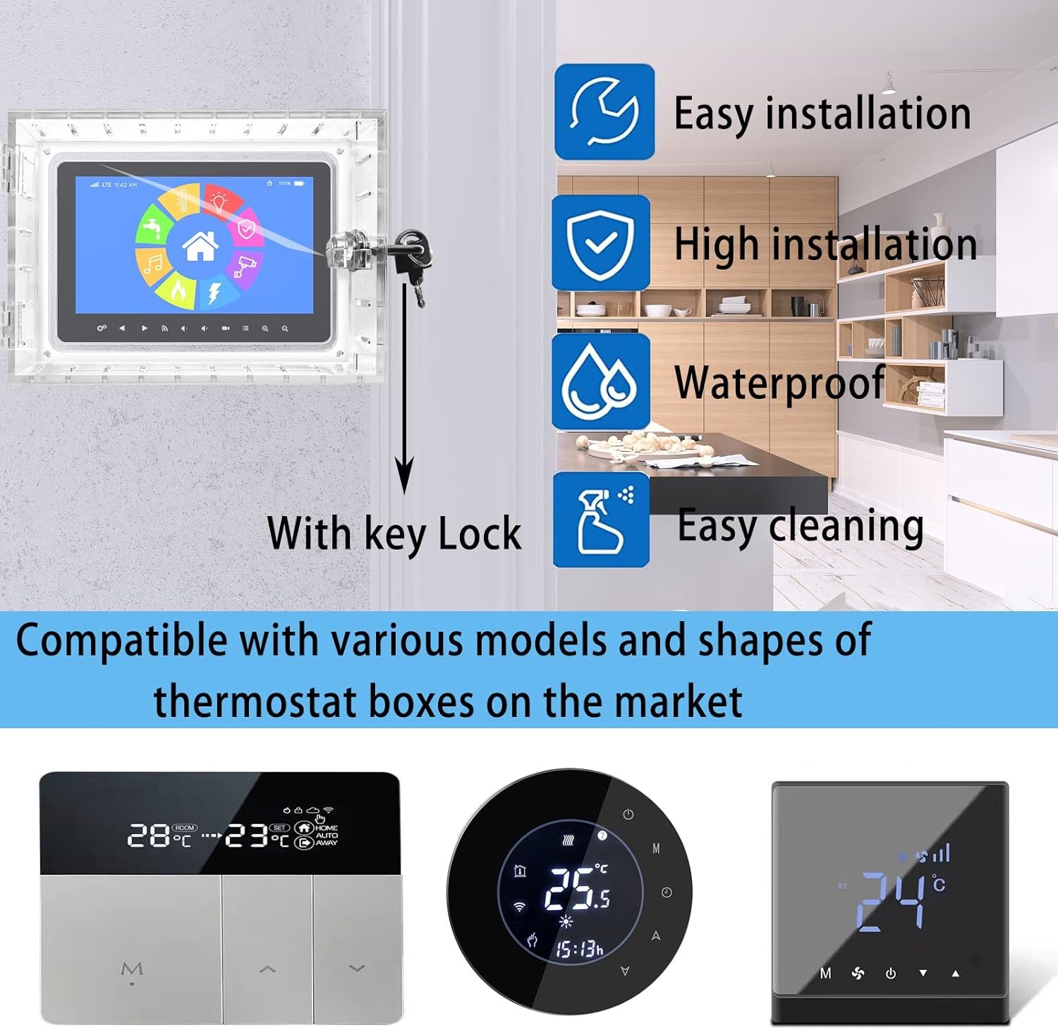 Be the first to review “Universal Thermostat Lock Box with Key,Clear Large Thermostat Guard for Thermostat on Wall,Thermostat Guard,Thermostat Cover Fits Thermostats 6.5″ H x 4.72″ W x 1.97″ D or Smaller (1 Set)” Cancel reply